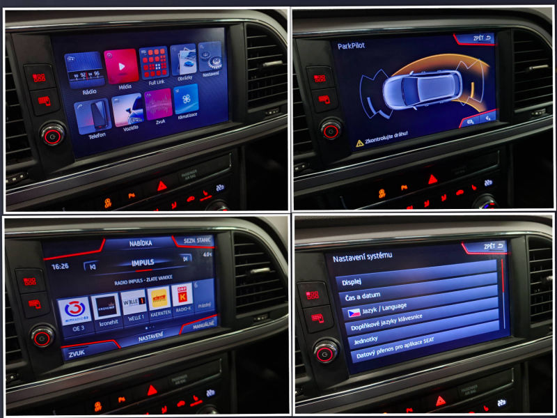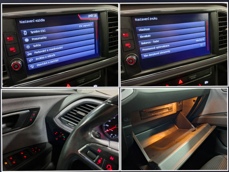 VÝBAVA: FULL LED přední světla + zadní LED světla + LED denní svícení, 6x airbag + 1x kolenní airbag řidiče, ABS, ASR, EDS, ESP, ESC, asistent rozjezdu do kopce a elektronická uzávěrka diferenciálu, světelný asistent (Coming Home, Leaving Home), elektrická parkovací brzda s funkcí Auto-Hold, 4X el.okna, el.zrcátka+vyhřívaná+SKLOPNÁ, el.VYHŘÍVANÁ sedadla, automatická DVOUZONOVÁ digitální klimatizace, TEMPOMAT, palubní počítač, originál autorádio SEAT Media System Plus s velkou barevnou dotykovou obrazovkou + Apple CarPlay + Android Auto + MirrorLink + 2xUSB/AUXin + bluetooth systém, manuální 6-ti stupňová převodovka, PŘEDNÍ i ZADNÍ parkovací senzory s vizualizací vzdalenosti od překážky na obrazovce rádia, výškově stavitelná obě přední sedadla, loketní přední/zadní opěrka, multifunkční kožený volant + kožená hlavice páky řazení, posilovač řízení, světelný a dešťový senzor, ostřikovače světel, vyhřívané trysky ostřikovačů čelního skla, kontrolní systém tlaku v pneumatikách, vnitřní zpětné zrcátko s automatickým stmíváním, tonovaná okna + zadní zatmavená, dělená a sklopná zadní sedadla + ISOFIX + otvor pro lyže, roleta v kufru, nastavitelné dvojité dno kufru, integrované LED blikače v zrátkách, adaptivní mlhovky, stříbrné střešní ližiny, ALU kola...
